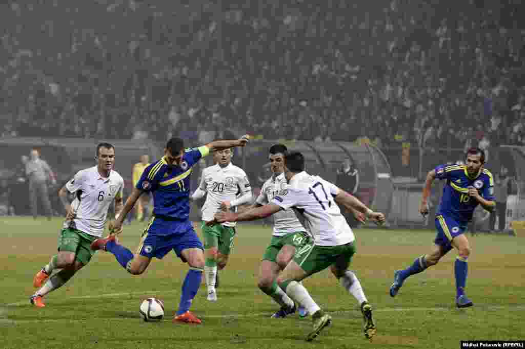 U prvoj utakmici dodatnih kvalifikacija za odlazak na Evropsko prvenstvo nogometna reprezentacija Bosne i Hercegovine u Zenici u subotu uveče odigrala je 1:1 protiv selekcije Irske. Gosti su na stadionu Bilino Polje prvi došli u vodstvo golom Bradyja u 81. minuti, Džeko poravnao četiri minute poslije. Uzvratna utakmica igra se za tri dana u Dublinu, tada će biti odlučeno koja od ekipa ide na Evropsko prvenstvo, koje će se 2016. godine održati u Francuskoj.