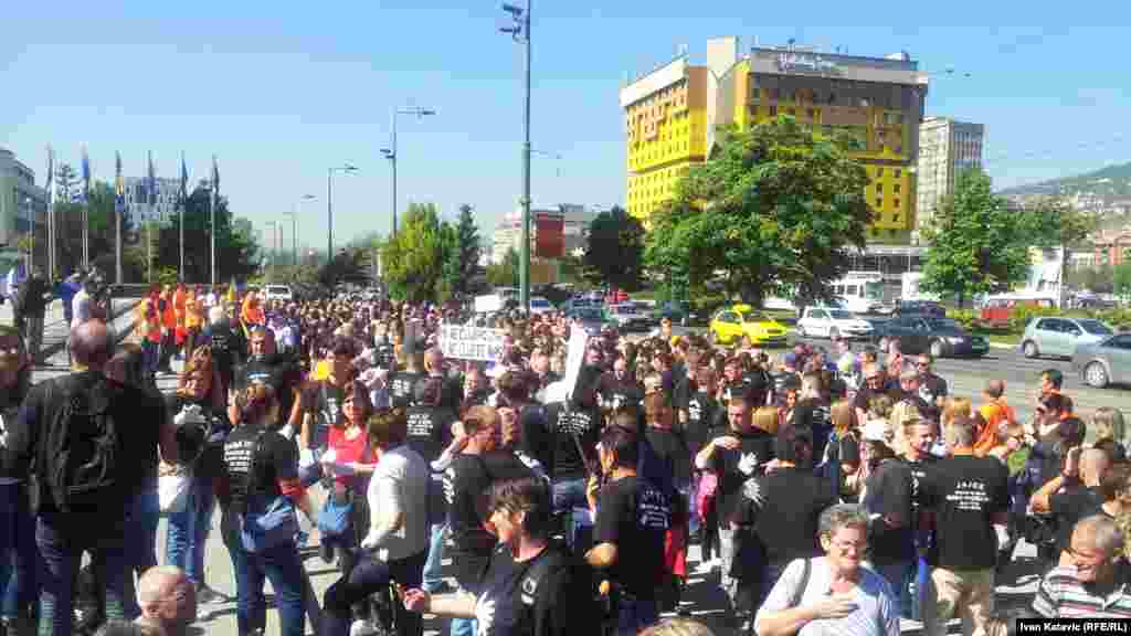 Povodom Međunarodnog dana gluhih i znakovnog jezika, u Sarajevu je organizirana mirna šetnja više od tisuću gluhih i nagluhih osoba iz cijele BiH. Na Trgu BiH vlastima su uputili zahtjeve koji se odnose na poboljšanje njihovog položaja u društvu. Foto: RSE / Ivan Katavić, 25. septembar 2013.