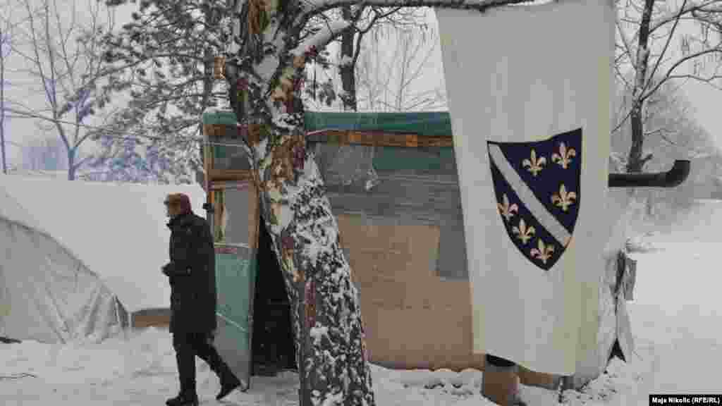 Radnici tvornice deterdženata „Dita“ Tuzla štrajkuju već 72 dana, zahtijevaju da im isplati zaostala dugovanja, 18 plaća, te riješi njihov status. Smatraju da su obespravljeni i poniženi, a od štrajka ne odustaju bez obzira na vrlo niske temperature. Inače, nitko od aktualnih vlasti u Tuzlanskom kantonu nije niti jednom posjetio ove radnike. Foto: RSE / Maja Nikolić, 11. decembar 2012.