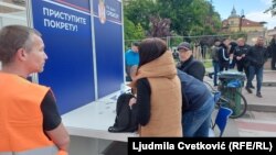 Na pojedinim štandovima ljudi potpisuju pristupnicu za učlanjenje u Pokret za narodu i državu, čije osnivanje je nekoliko meseci ranije najavio predsednik Srbije Aleksandar Vučić.