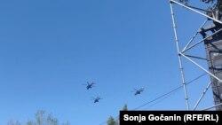 U njihovoj pratnji bili su lovci-bombarderi "orao", nakon čega je usledio nalet "supergaleba", transportnih aviona, školskih aviona "lasta".