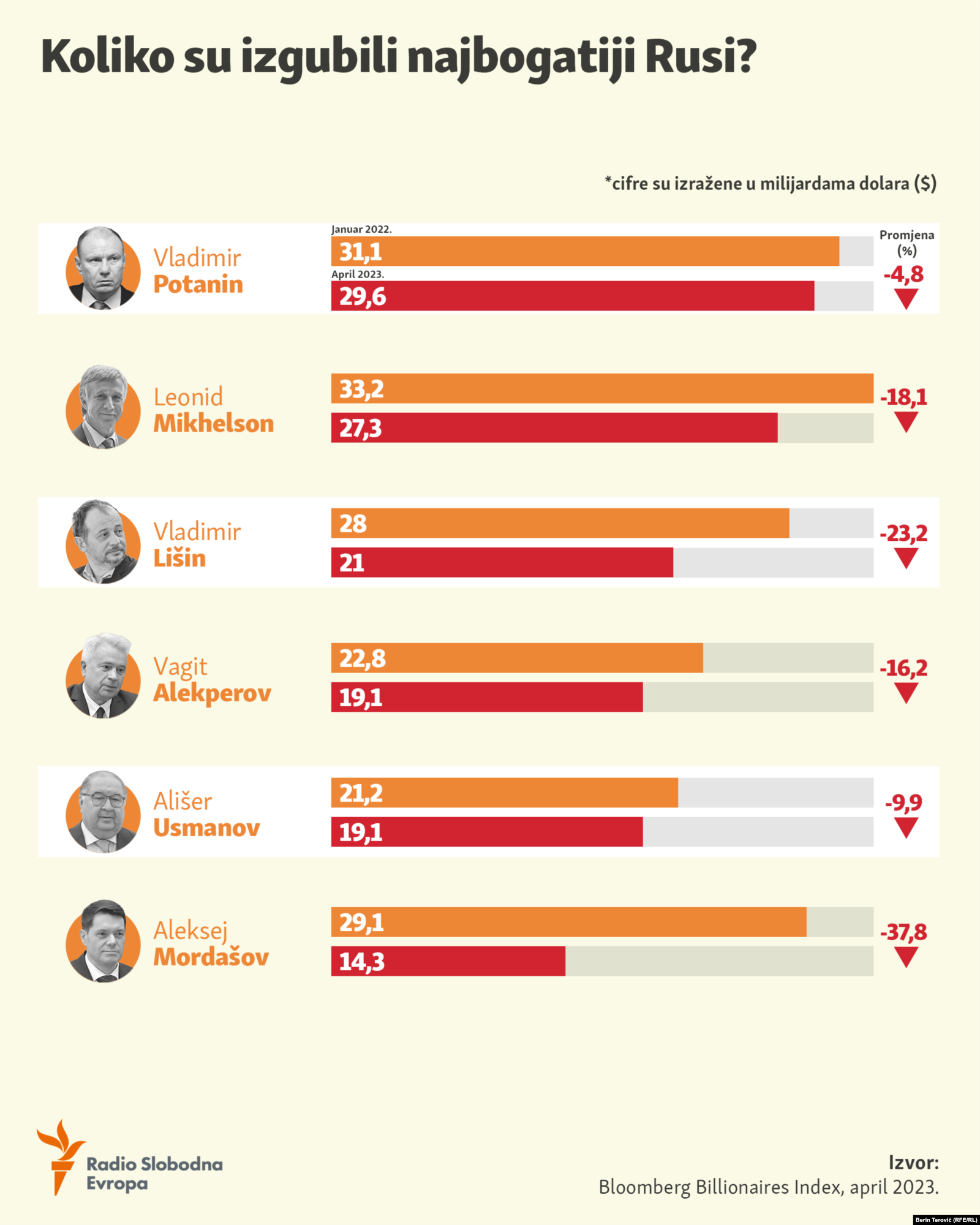 Kako se kapital najbogatijih ruskih milijardera na promijenio od januara 2022. do danas? Ko je najviše izgubio, a ko je zaradio?