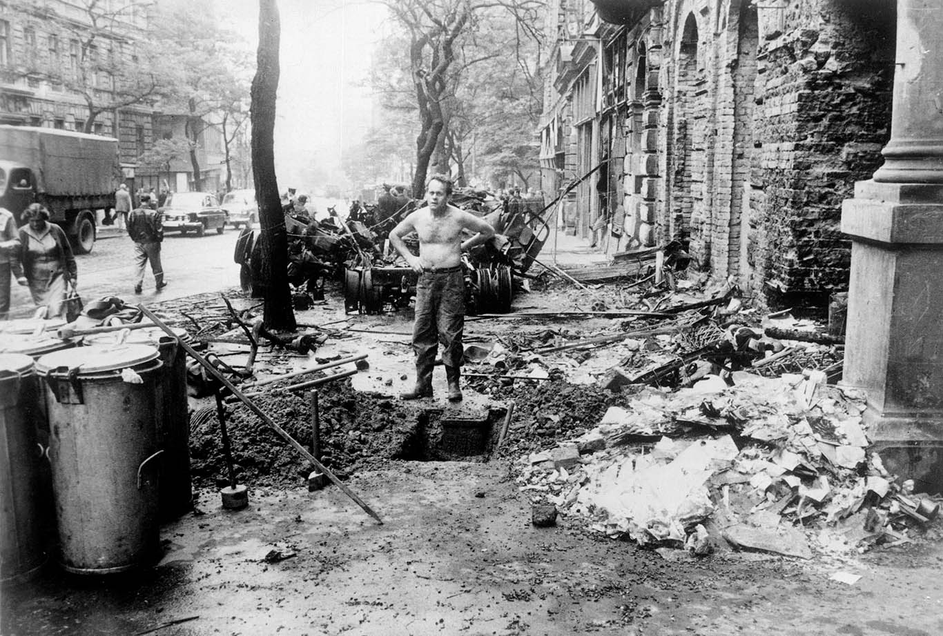 Čovjek gleda štetu u Pragu, 31. augusta, 10 dana nakon što su tenkovi ušli u Čehoslovačku. AFP