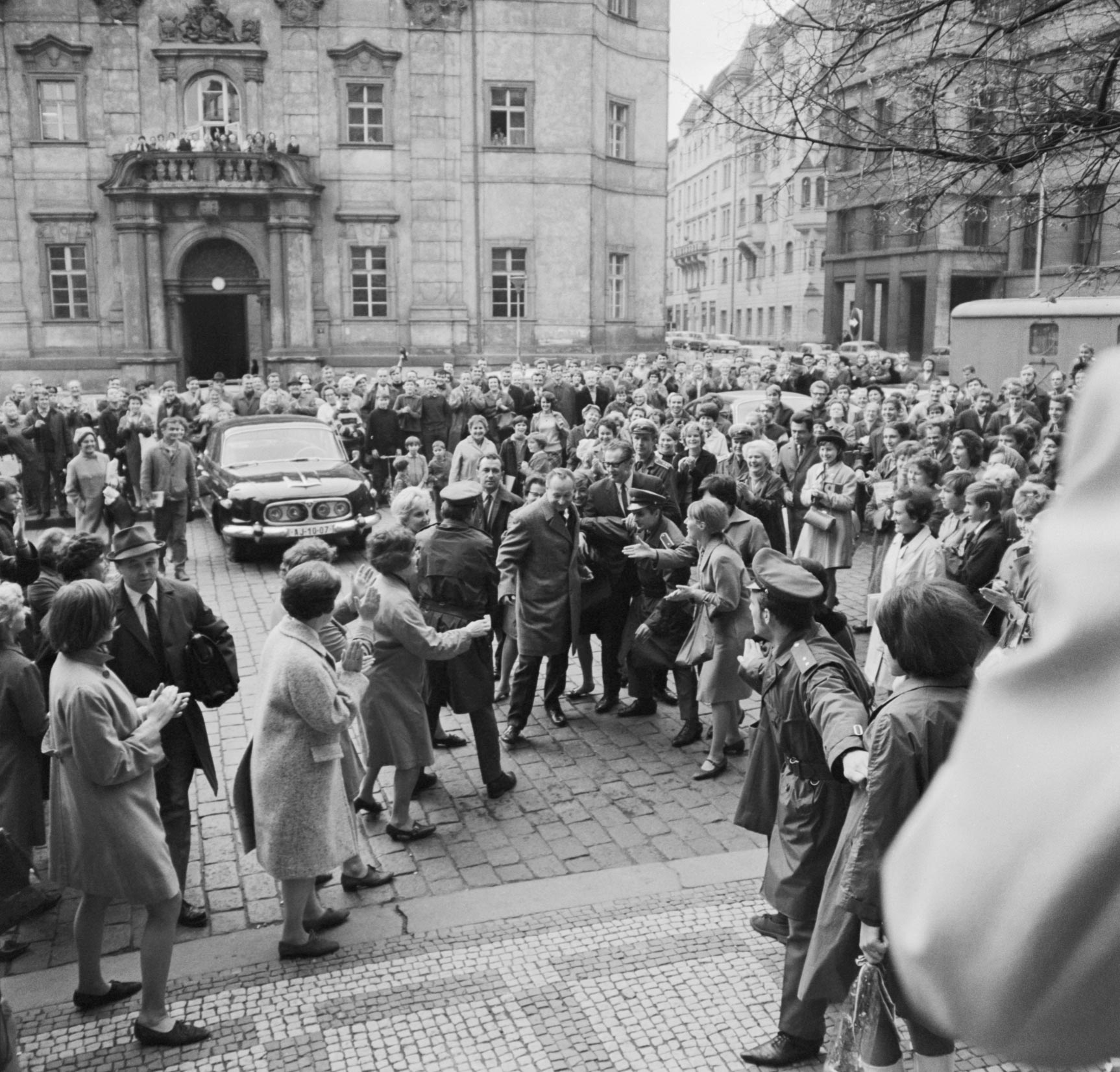 Skup na Starogradskom trgu u Pragu u februaru 1968. godine, u znak obilježavanja dvadesete godišnjice socijalističkog državnog udara. CTK Slika/Karel Mevald
