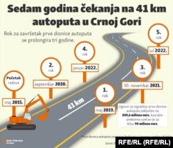 Sedam godina nakon početka gradnje 41 kilometra dionice auto-puta Bar-Boljare, iz Vlade Crne Gore najavljuju novo prolongiranje otvaranja trase koju gradi kineska državna kompanija China Road & Bridge Corporation (CRBC).