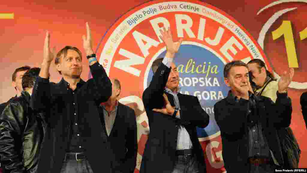 Koalicija za Evropsku Crnu Goru, koju čine Demokratska partija socijalista Mila Đukanovića i Socijaldemokratska partija, osvojila je prema skoro kompletnim preliminarnim rezultatima 45,7 odsto glasova ili 39 od 81 skupštinskog mandata na parlamentarnim izborima koji su održani 14. oktobra 2012. Foto: RSE / Savo Prelević