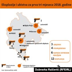 Žrtve mafijaških obračuna nisu samo, policijski rečeno - bezbjednosno interesantna lica, već i osobe koje su se u pogrešnom trenutku našle na pogrešnom mjestu. Nakon više eksplozija automobila, bacanja eksplozivnih naprava na poslovne prostore, ubistava od primorja preko Podgorice do sjevera Crne Gore, sukobi organizovanih kriminalnih grupa eskalirali su posljednjim dvostrukim ubistvom u bašti kafića u strogom centru Podgorice, pred velikim brojem prisutnih, te prethodnom eksplozijom automobila u prometnoj garaži u Podgorici, pri čemu je stradao vozač.