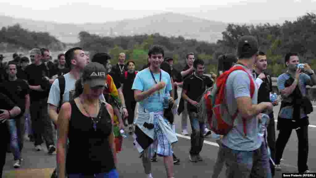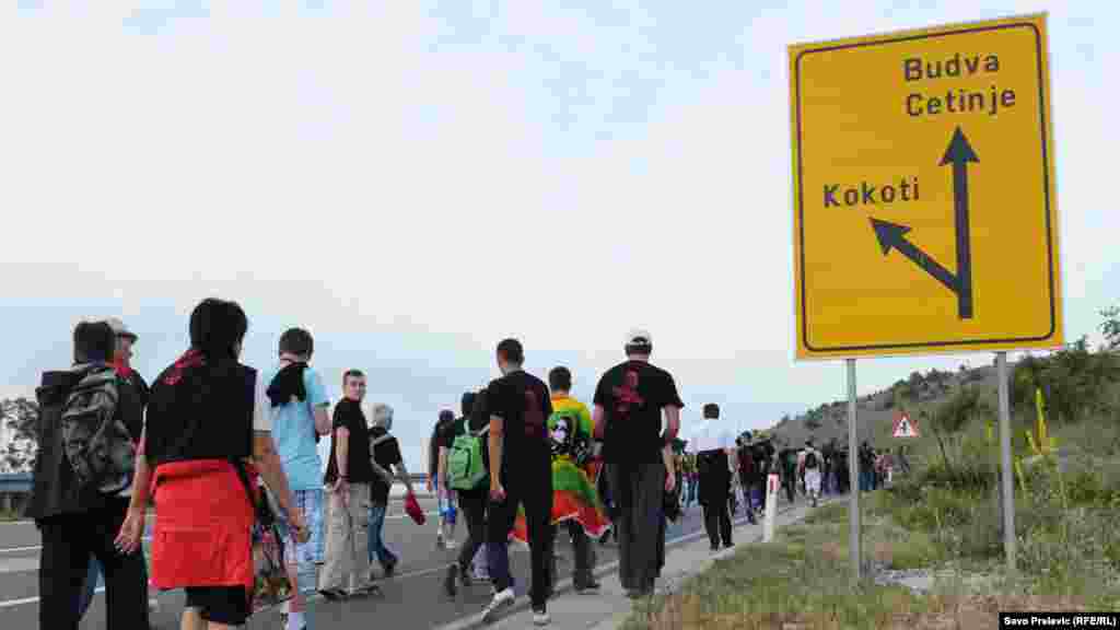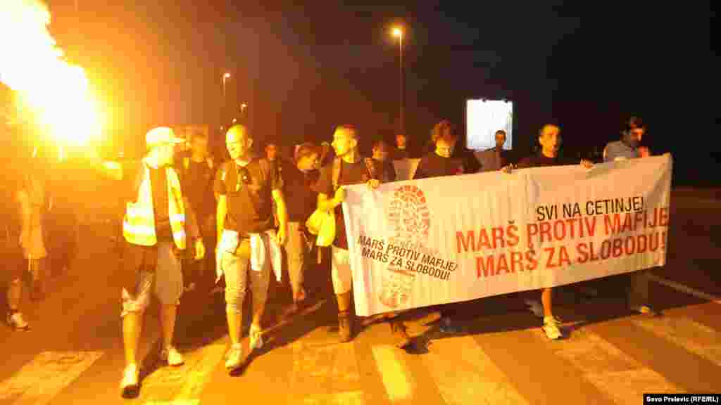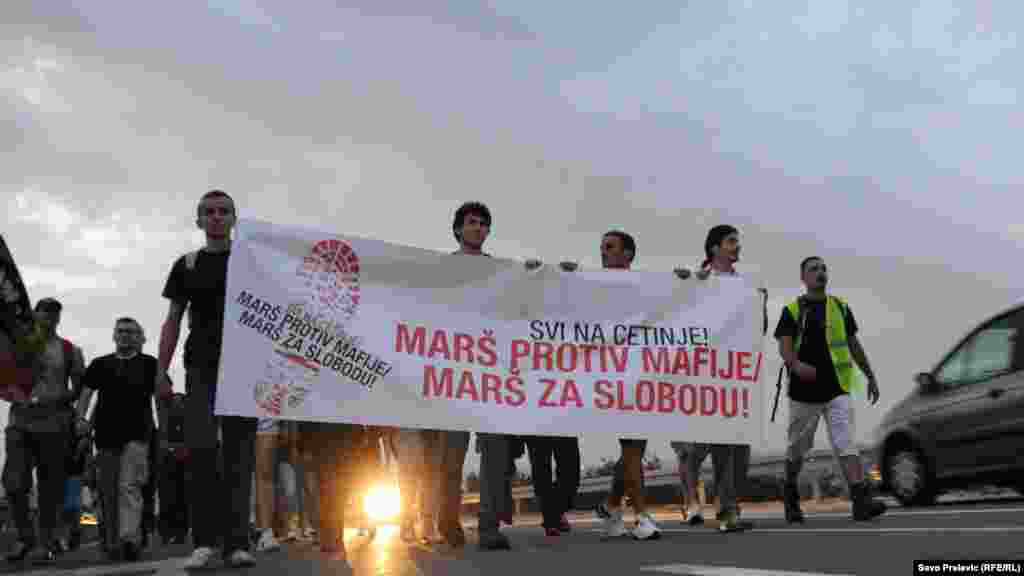 Grupa građana krenula je od Podgorice ka Cetinju, u protestnom skupu pod nazivom ¨Marš protiv mafije – Marš za slobodu¨. Organizatori ističu da iza njih ne stoji niti jedna politička strana, a mirnim okupljanjem izražavaju svoje nezadovoljstvo sveukupnim stanjem u zemlji. Foto: RSE / Savo Prelević, 20. maj 2013.