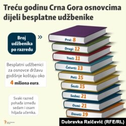 Svi crnogorski osnovci, njih oko 70.000, i ove godine na početku školske godine dobiće besplatne udžbenike. To je državu koštalo oko četiri miliona eura.