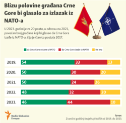 Blizu polovine građana Crne Gore bi glasalo za izlazak iz NATO-a