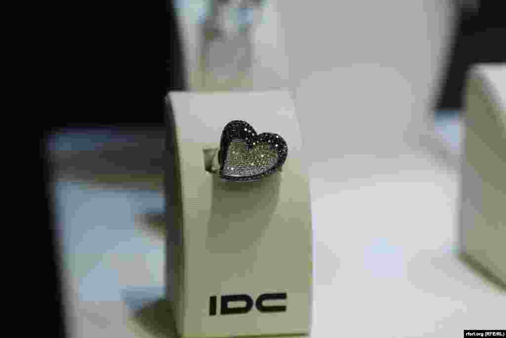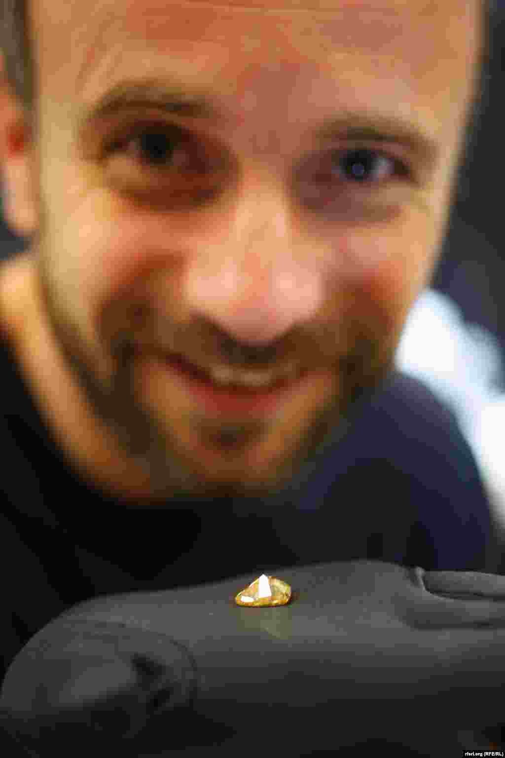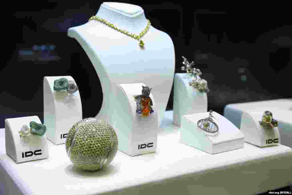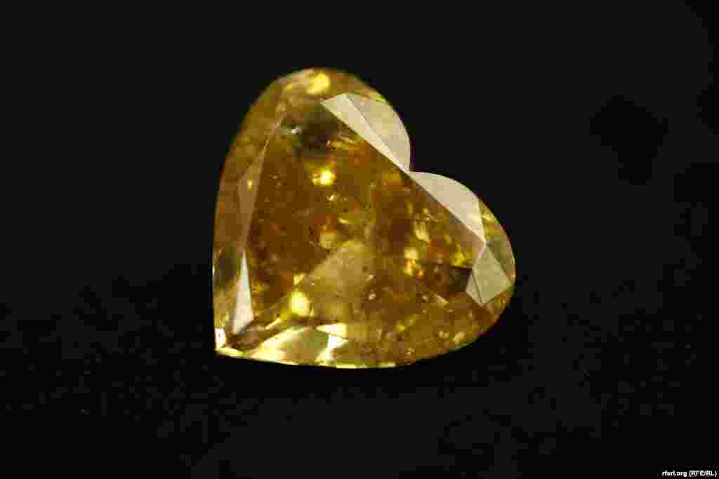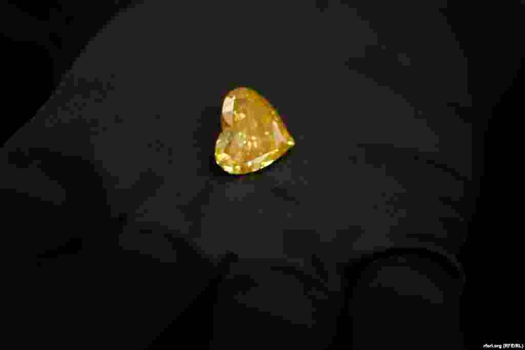 Reporteri RSE na dlanu imali dijamant vredan pola miliona evra. Prva izložba večitog dragog kamenja otvorena je u Beogradu. U Izrael dajmond centru prikazano je više od 100 eksponata, a najvredniji je žuti dijamant u obliku srca pronađen u Rusiji. FOTO RFE/RL