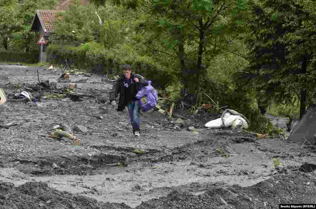 Više stotina mještana ovih naselja u Zeničko-dobojskom kantonu i u subotu napuštaju kuće jer nisu sigurni u njima. Među njima je i Agan Karahasanović koji je, uz pomoć bagera, uspio svoju obitelj evakuirati na vrijeme. Neke kuće je uništila poplava, a druge klizišta. Sa magistralnog puta Zenica - Žepče još uvijek se uklanjaju prepreke nastale klizanjem zemlje. RSE/Foto: Srećko Stipović