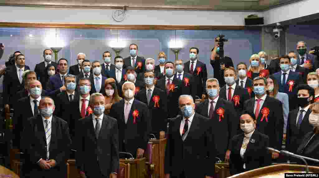 Konstitutivna sjednica crnogorskog parlamenta počela je intoniranjem državne himne, a ovom činu nije prisustvovao dio poslanika Demokratskog fronta, dok je nosilac liste „Za budućnost Crne Gore“ Zdravko Krivokapić s ostalim prisutnim poslanicima i gostima ispoštovao državnu himnu.