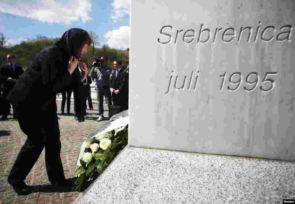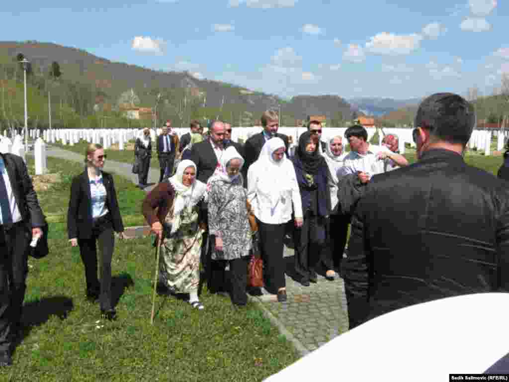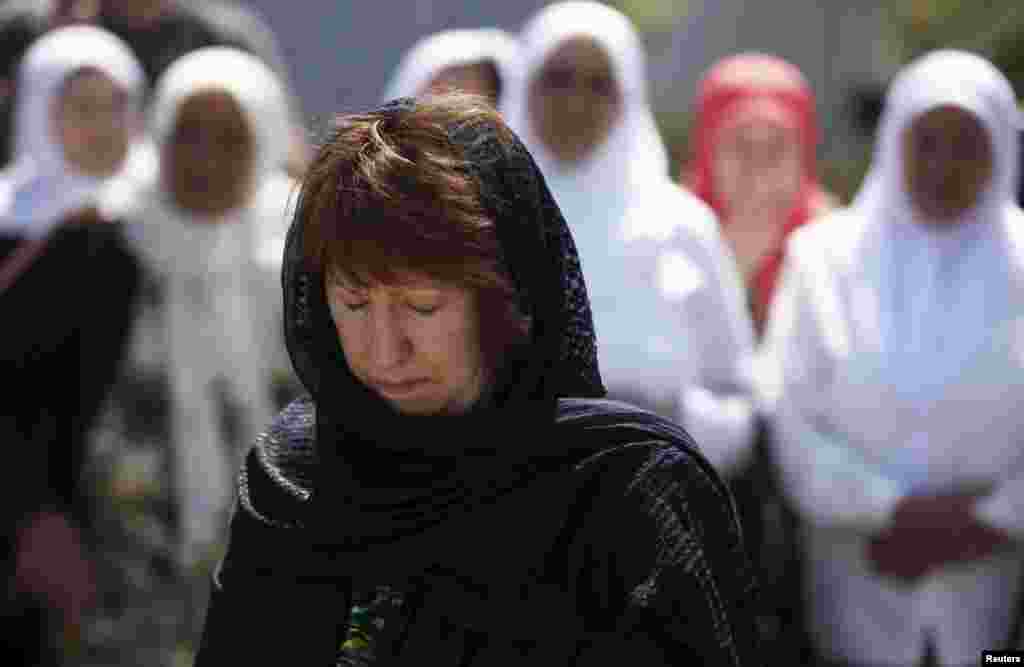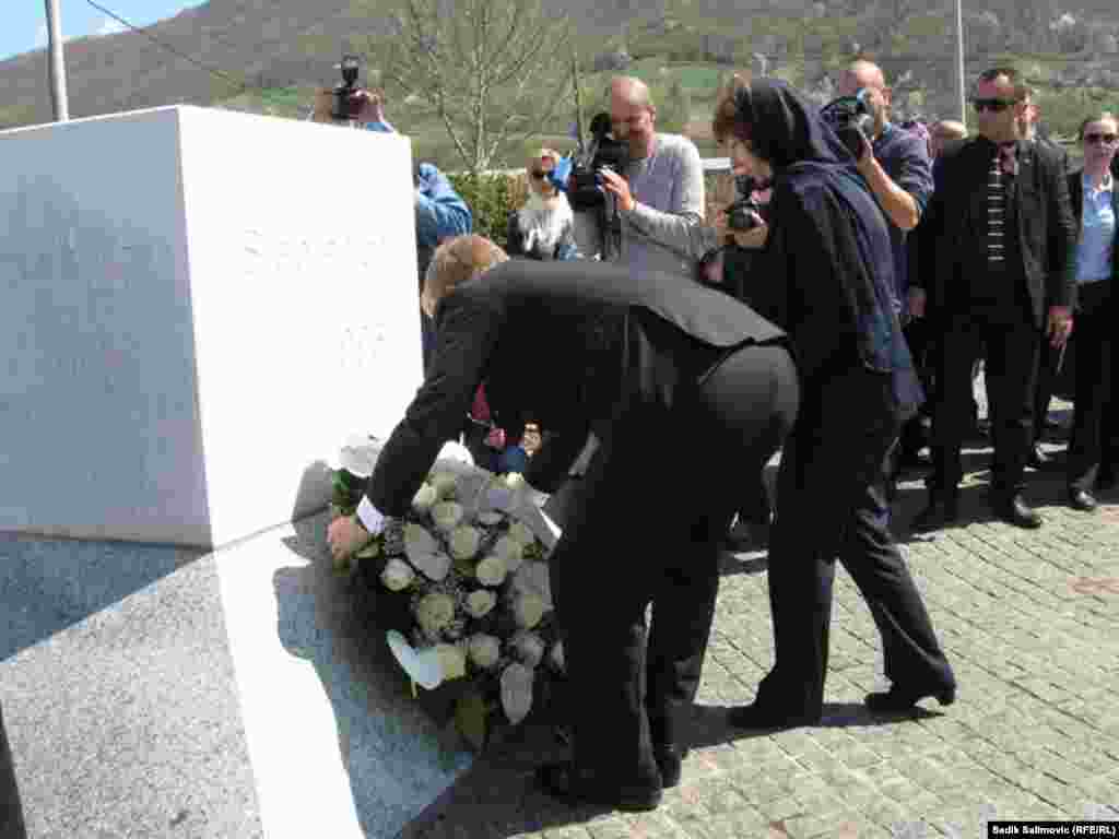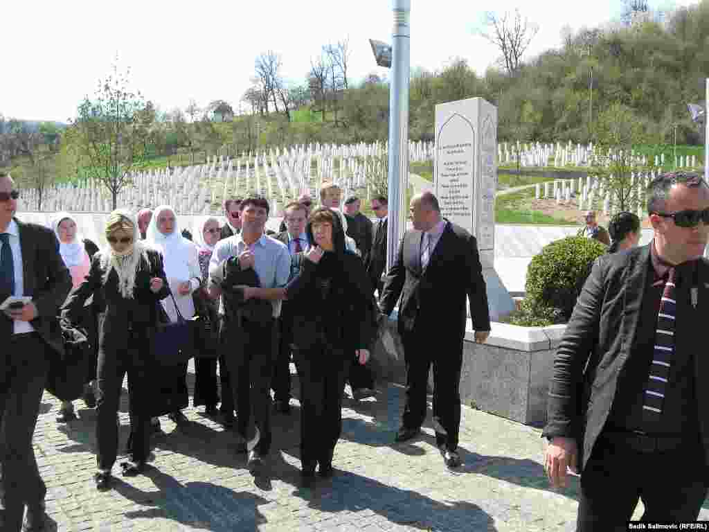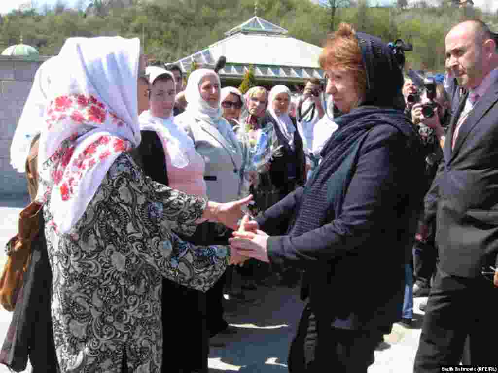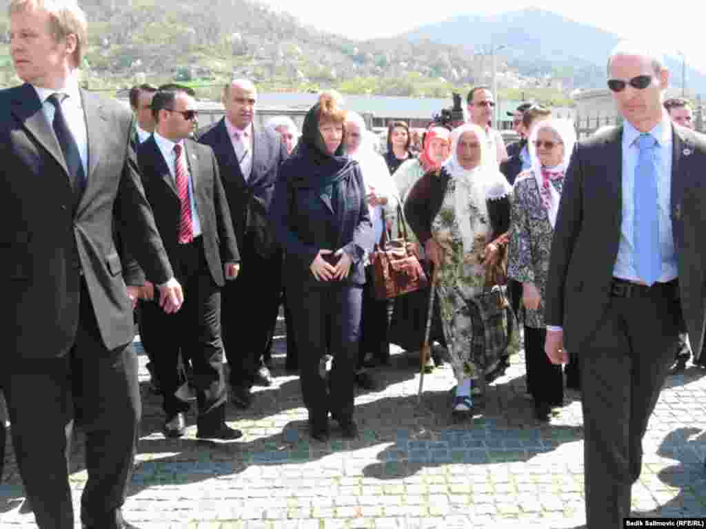 Visoka predstavnica EU za vanjsku politiku i sigurnost Catherine Ashton u Memorijalnom centru Potočari položila je cvijeće na spomen obilježje i odala poštu Bošnjacima ubijenim u genocidu jula 1995. godine. Foto, Sadik Salimović i agencije