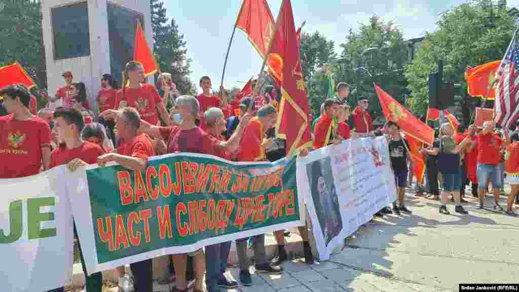 Crnogorske i komitske zastave na cetinjskom protestu