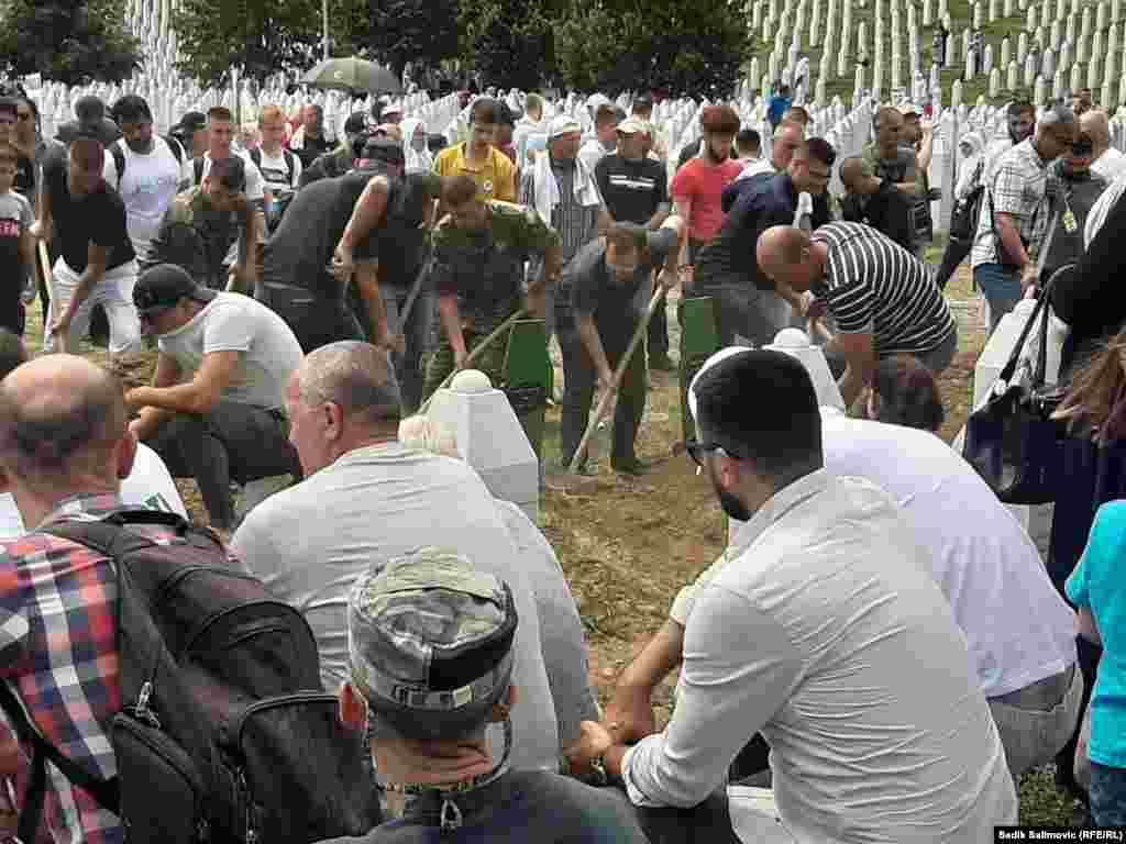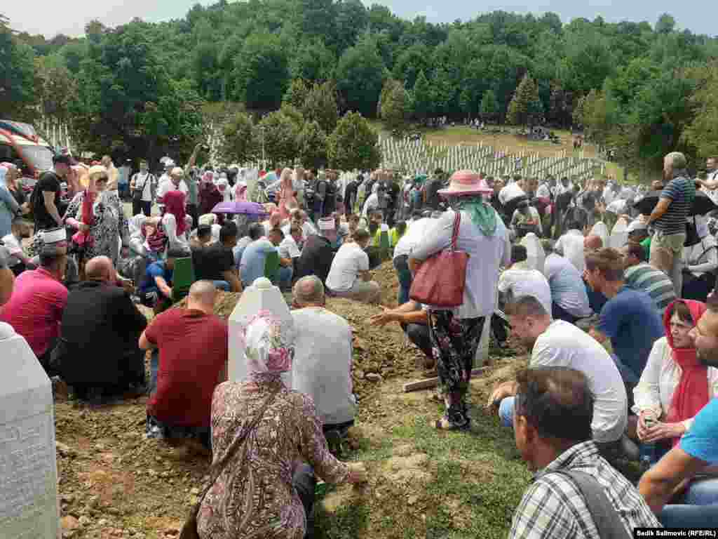 Porodice žrtava srebreničkog genocida pored mezara svojih najmilijih.