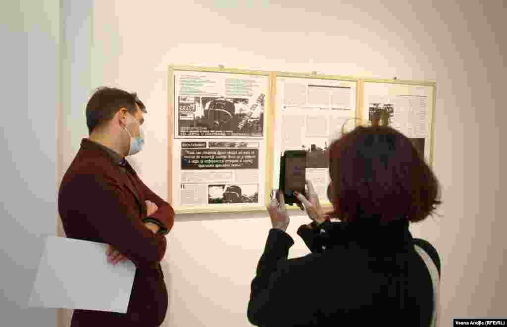 "Izložba je nastala u okviru grant programa BIRN-a koji ima za cilj da otvori prostor umetnicima, istraživačima i novinarima da se bave tranzicionom pravdom", rekla je Jovana Prusina, koordinatorka programa Balkanske tranzicione pravde.
