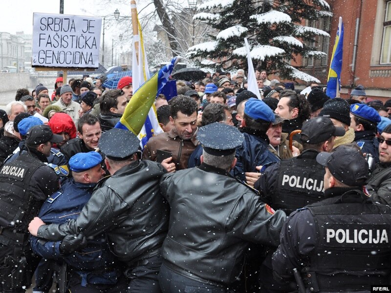 Osnovne poruke koje su se čule sa protesta jesu da agresori hapse žrtve, te da je Srbija zahtjevom za hapšenjem i izručenjem učinila korak unazad u odnosima sa BiH.