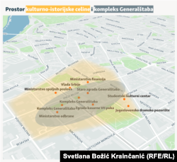 "Osim ovih spomenika kulture, leks specijalisom je propušteno da se prepozna i da je čitav ovaj građevinski kompleks unutar zaštićene zone prostorno-istorijske celine", navodi Ristanović.