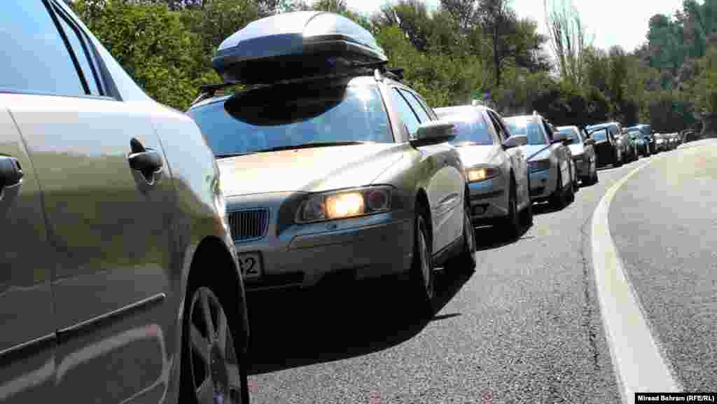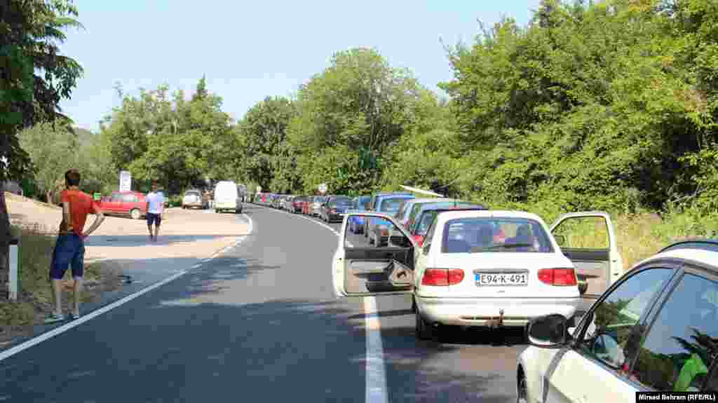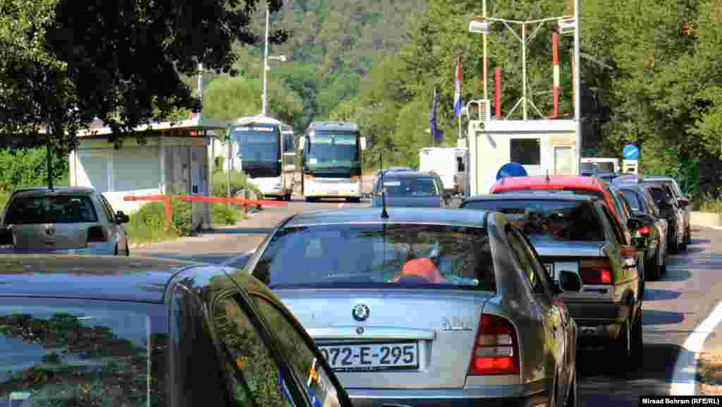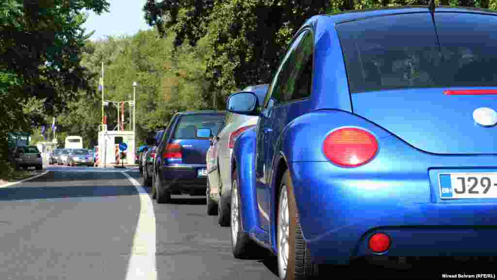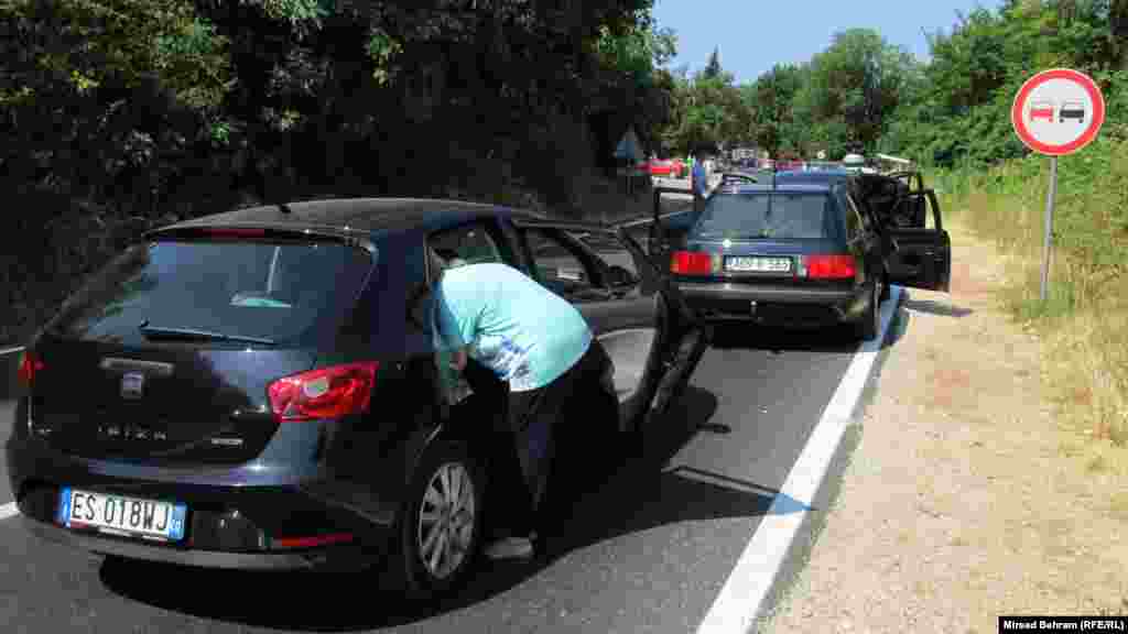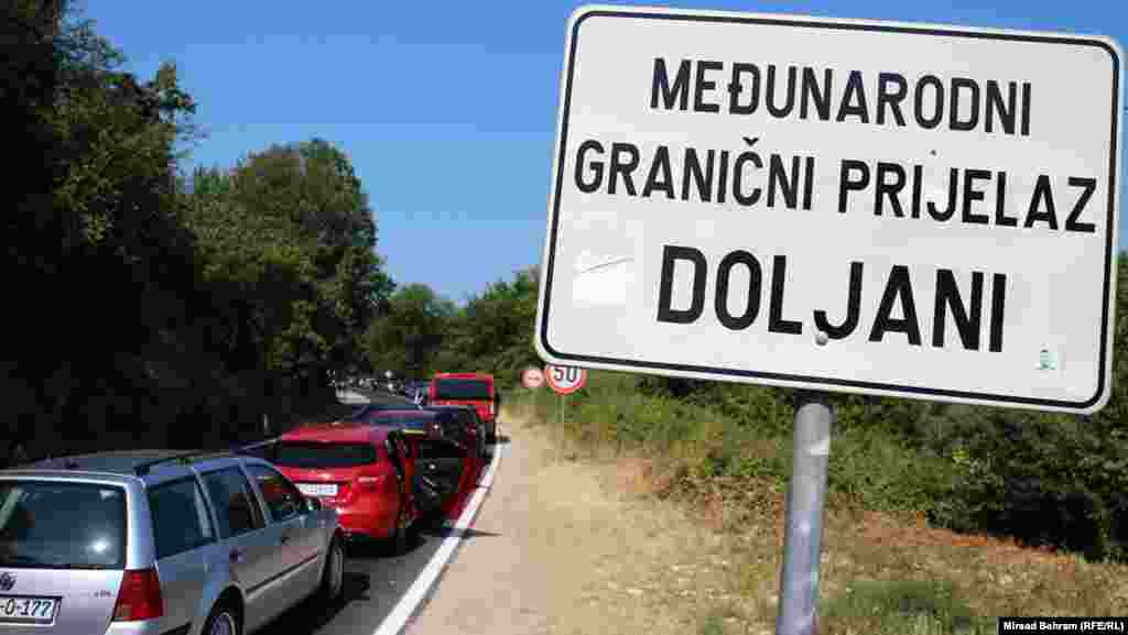Čak nekoliko stotina metara prije saobraćajnog znaka koji upozorava da je blizu granični prelaz Doljani, počinje kolona automobila, koji čekaju na ulaz u Hrvatsku. Čekanje na prelazak traje satima.
