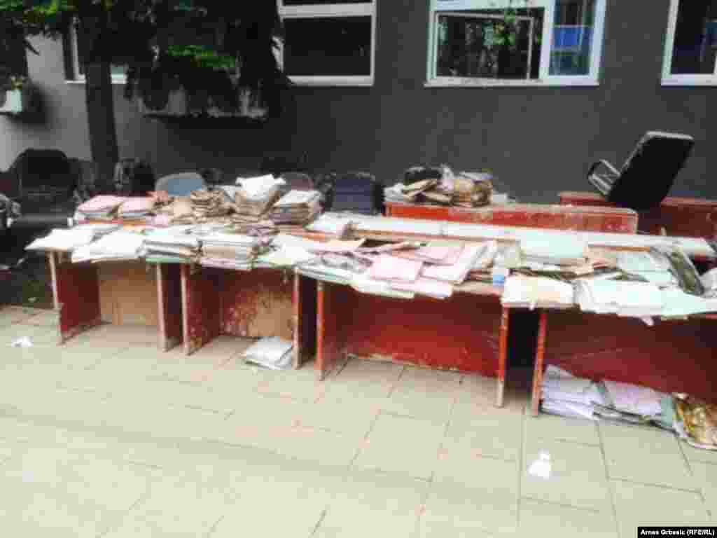 Voda se doprema cisternama. Tragovi katastrofe vidljivi su na svakom koraku. Građani hodaju sa zaštitnim maskama zbog zraka punog prašine i neprijatnih mirisa. U glavnoj gradskoj ulici i drugim dijelovima grada i dalje se mogu vidjeti ogromne količine blata i hrpe namještaja. Na ulici su i sudski predmeti. 20.5.2014. I u Tešnju slike nakon katastrofe nimalo lijepe. RSEFoto / Arnes Grbešić