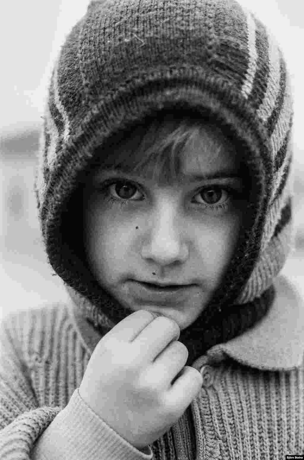 Djevojčica iz Bosne i Hercegovine u izbjegličkom kampu u Varaždinu, Hrvatska, u zimu 1992. godine.