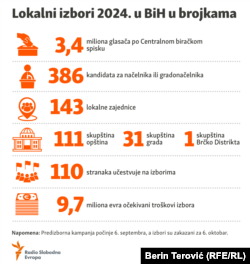 Lokalni izbori u Bosni i Hercegovini su zakazani za 6. oktobar. Na lokalnim izborima će se ukupno birati 142 gradonačelnika, odnosno načelnika općina, te će biti izabran isti broj skupština općina / gradova. Građani će birati i novi saziv Skupštine Brčko distrikta BiH, kao posebne administrativne jedinice u BiH.