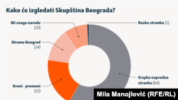 U Beogradu je, prema podacima GIK-a, najviše mandata u gradskoj skupštini osvojila koalicija oko Srpske napredne stranke - 64 od ukupno 110.