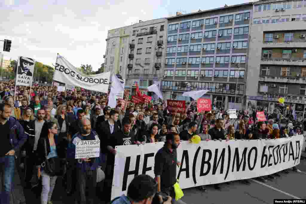 Više hiljada građana ponovo se okupilo na protestu u Beogradu zbog toga što počinoci i organizatori noćnog rušenja u beogradskoj Hercegovačkoj ulici u Savamali nisu otkriveni i privedeni. "Ostavke, ostavke" i "Čiji je grad", neke su od poruka sa protesta.
