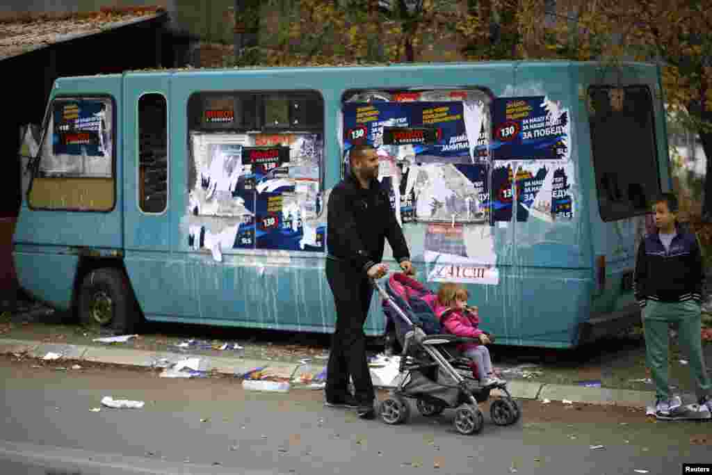 Članovi OEBS-a napuštaju izborno mesto u školi "Sveti Sava" nakon incidenta, 3. novembar 2013.