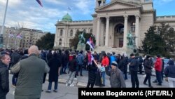 Isred Skupštine Srbije okupilo se više desetina građana protiveći se planu Evropske unije za normalizaciju odnosa Srbije i Kosova.