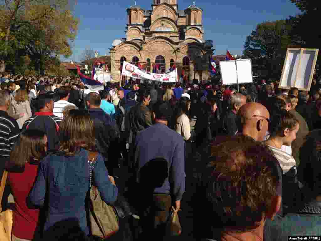 Premijer Srbije Ivica Dačić u subotu je u poseti Manastiru Gračanica na Kosovu. U Gračanici se okupio veliki broj ljudi, što zbog predizbornog skupa Građanske inicijative Srpska, što zbog dočeka srbijanskog premijera. 19.10.2013. RSE foto/Amra Zejneli