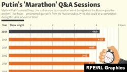 Dok se Vladimir Putin obraćao naciji u svojoj godišnjoj televizijskoj emisiji, 17. put po redu, jedan gledalac je imao samo jedno pitanje za ruskog predsjednika: "Kada ćete otići?" piše redakcija Radija Slobodna Evropa na engleskom jeziku.