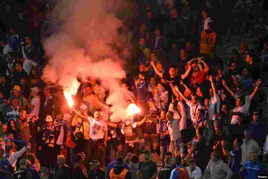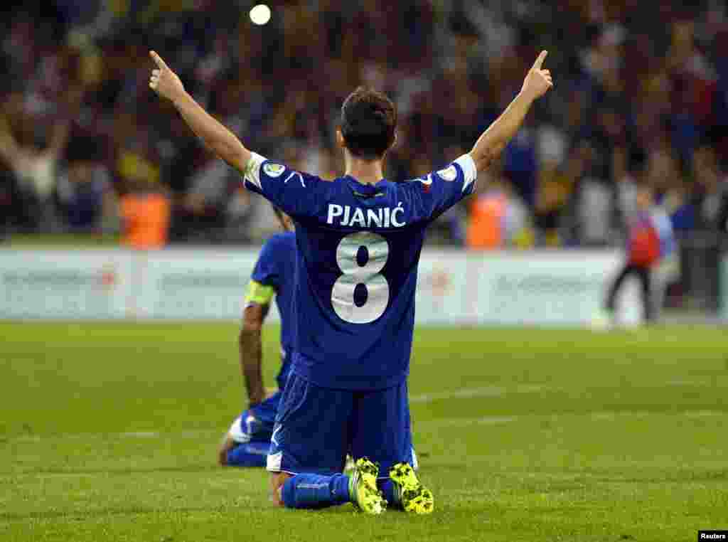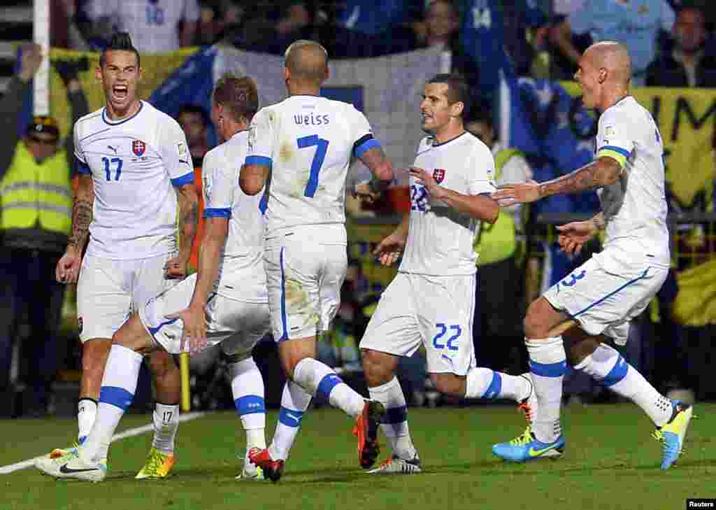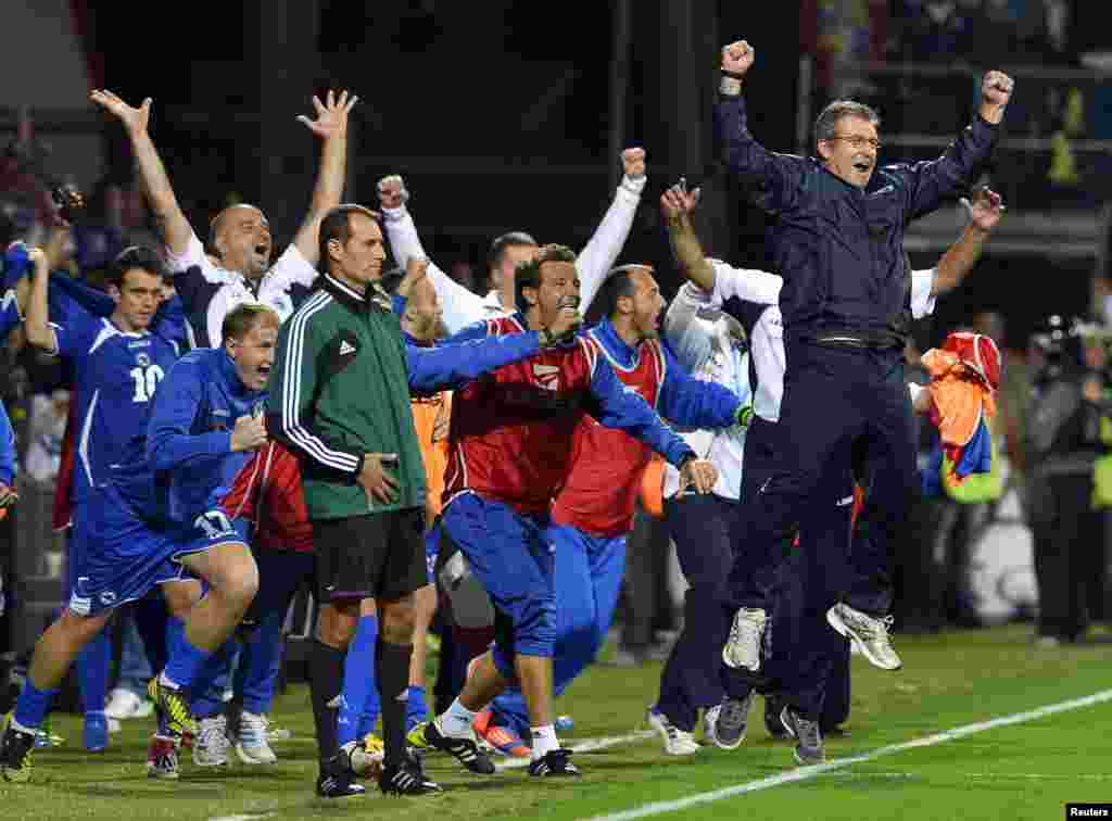 Nogometna reprezentacija Bosne i Hercegovine savladala je u Žilini selekciju Slovačke sa 2:1 i zadržala prvo mjesto u kvalifikacionoj grupi za Svjetsko prvenstvo. Gol za Slovačku postigao je Marek Hamšik, a za BiH Ermin Bičakčić i Izet Hajrović . Foto: Reuters, 10. septembar 2013.
