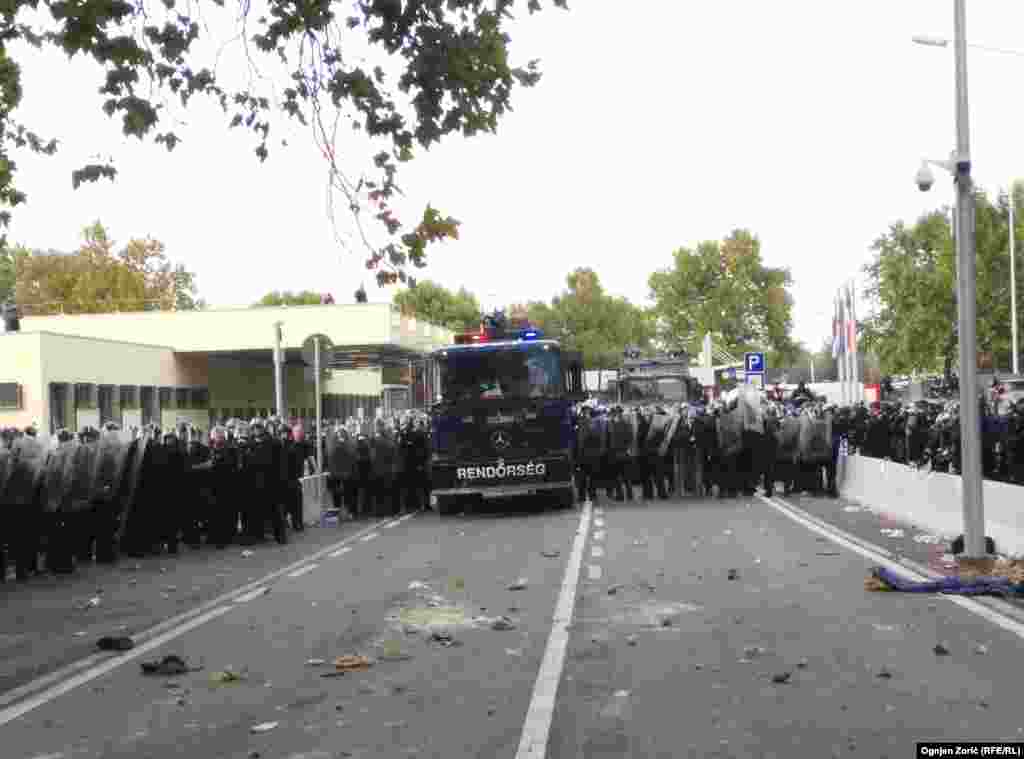 Na granici između Mađarske i Srbije, u međuzoni u kojoj su zbog zatvorene mađarske granice zarobljene stotine izbeglica, njih grupa pokušala je da probije ogradu ka Mađarskoj, ali ih je policija zaustavila suzavcem i vodenim topovima. 16.9.2015
