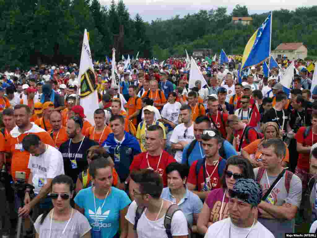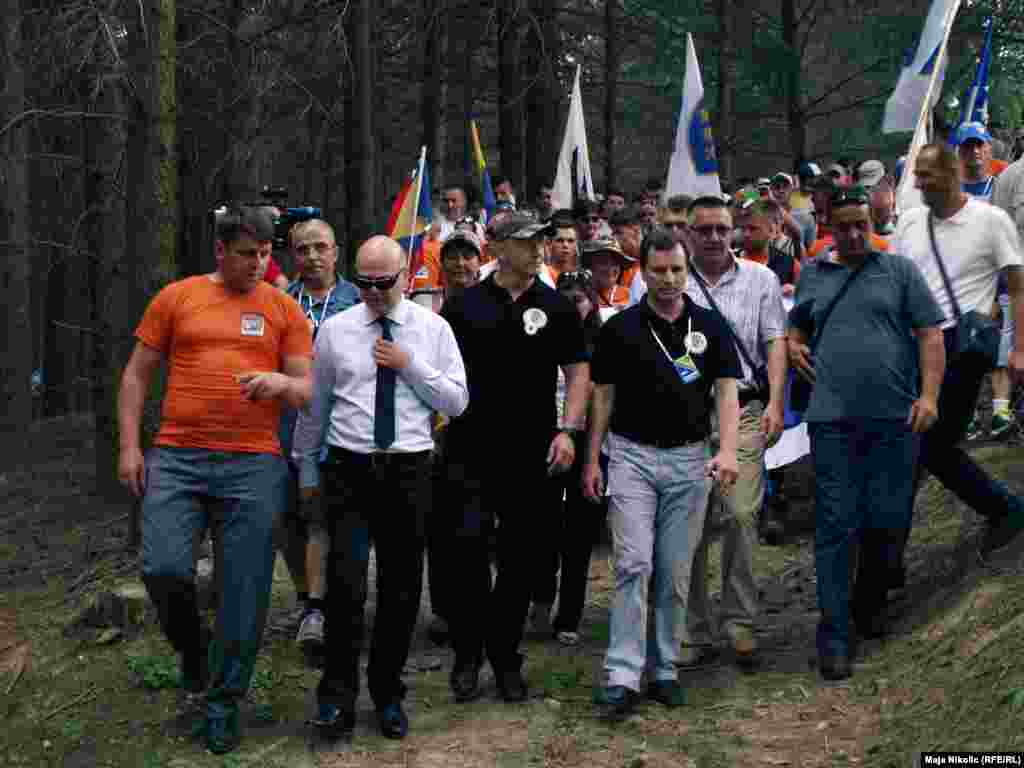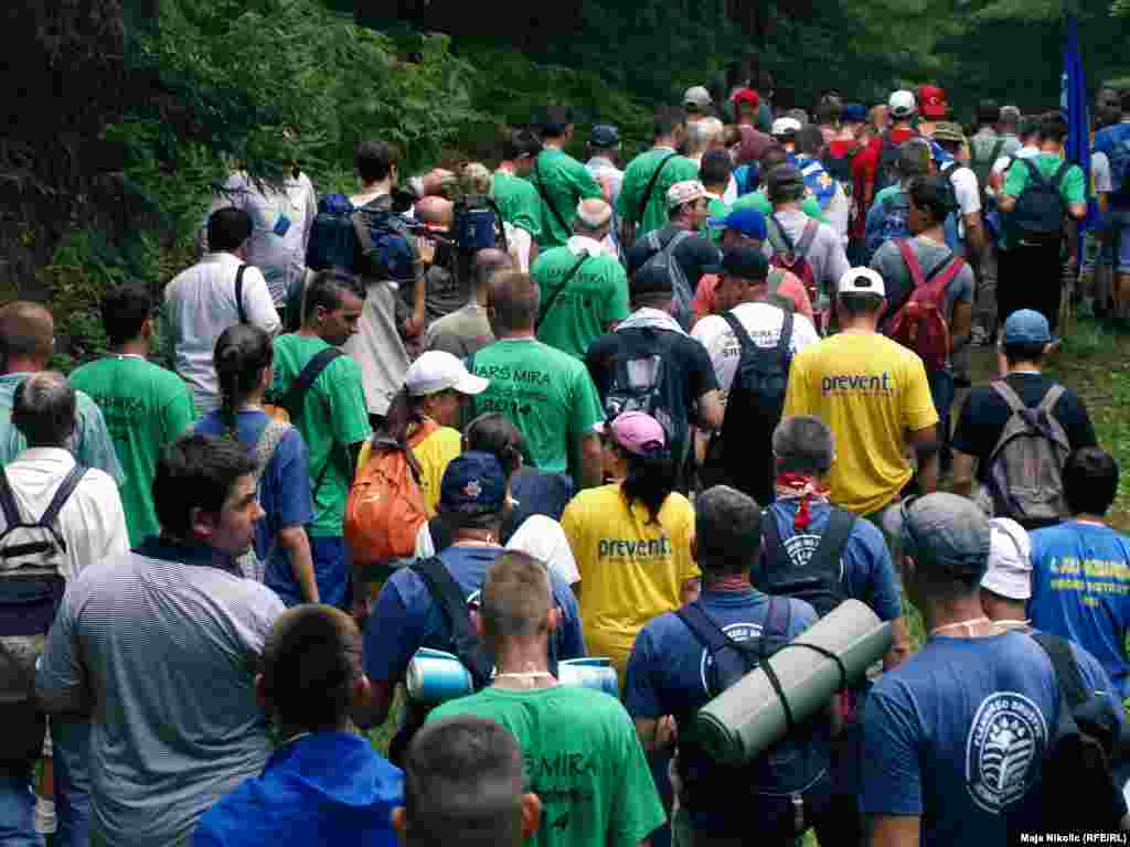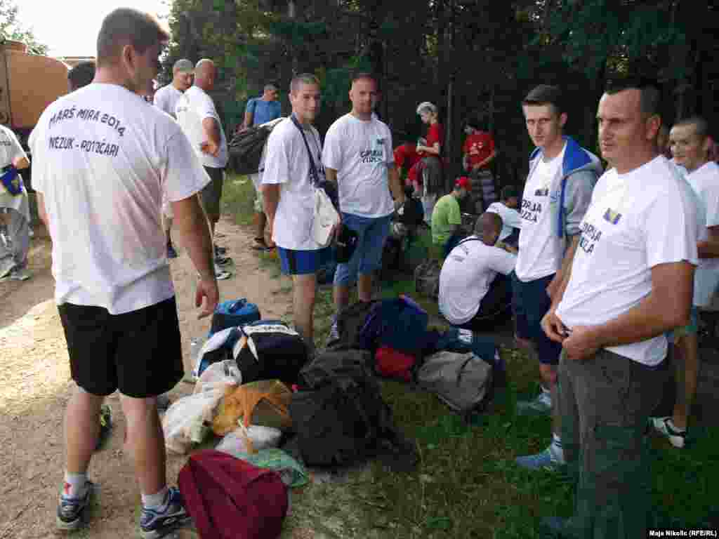 Učesnici su na deseti Marš mira 2014. krenuli iz Nezuka kod Sapne, mjesta gdje su se u julu 1995. Srebreničani probili iz obruča Vojske RS. Prema Potočarima, gdje će odati počast žrtvama srebreničkog genocida krenuli su i biciklisti iz Bihaća. 8.7.2014. RSE foto / Maja Nikolić