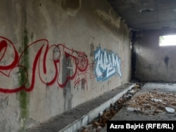 Objekat je bez prozora, a pored njega su vidjivi ostaci smeća. Migranti kažu da ponekad u objekat dođe i neki pas lutalica.