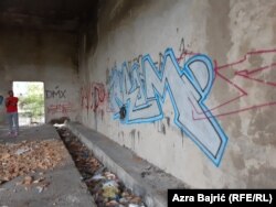 Na jednom od oslikanih murala je i ime jednog od migranata. Pored murala je i velika količina smeća.