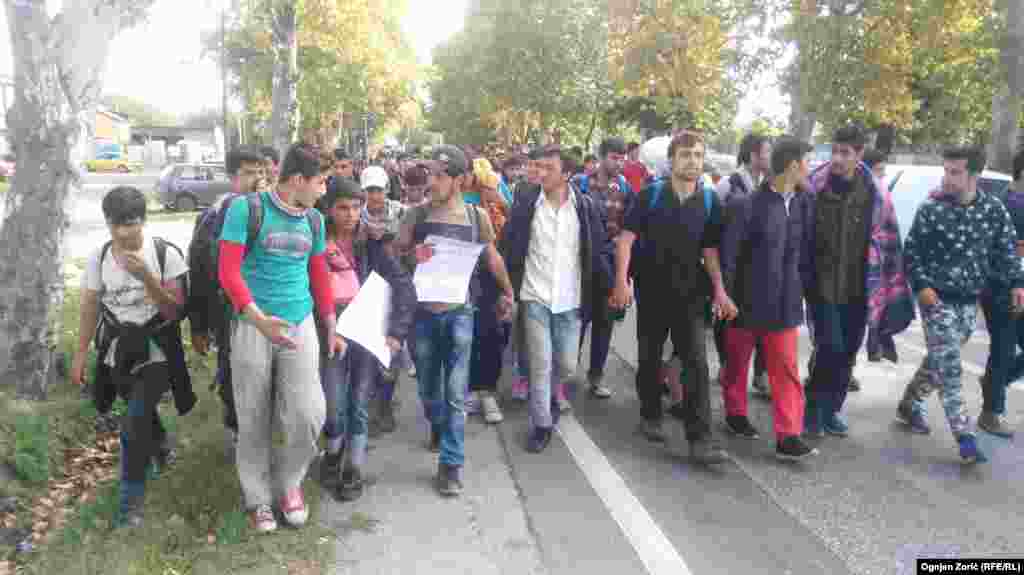Migranti koji su u utorak prepodne protestovali kod autobuske stanice u centru Beograda, uputili su se ka granici sa Mađarskom pešice. Grupa od oko 300 migranata je krenula preko Novog Beograda ka severu Srbije, a prati ih policija.
