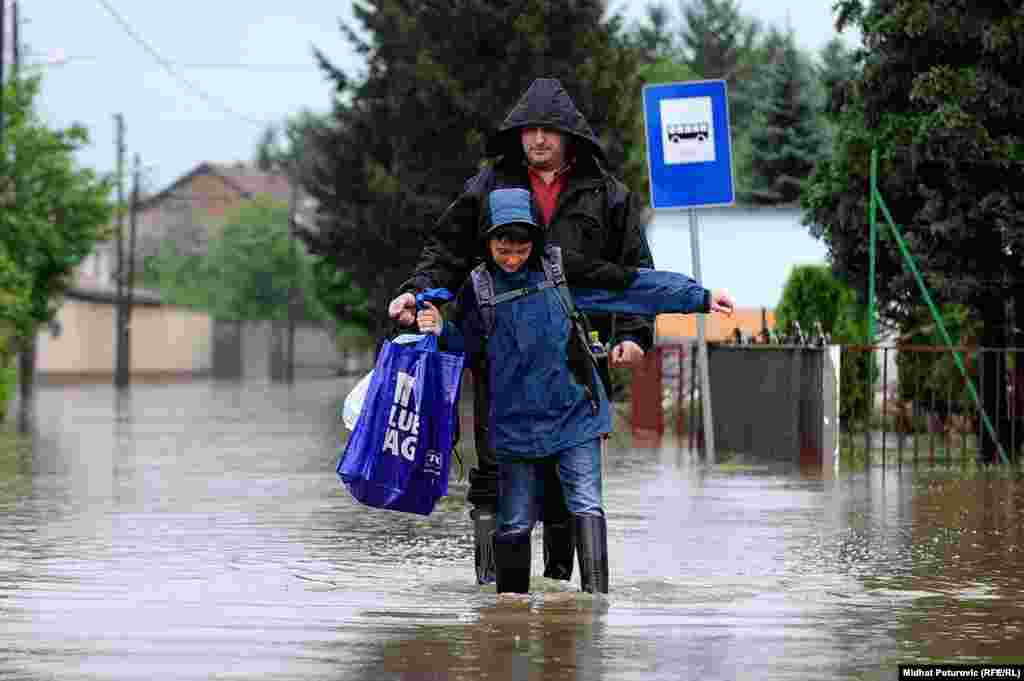 U mjestu Doglodi je pod vodom više od 50 kuća. Civilna zaštita i vatrogasci su na terenu. Poplava uništava domove i usjeve, a mnogi mještani bili su primorani izaći iz svojih kuća. Nema ni struje i vode. RSE/Foto: Midhat Poturović
