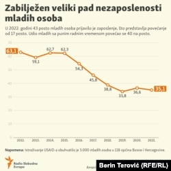 Udio mladih sa punim radnim vremenom povećao se 2022. na 40 na posto, navodi se u izvještaju USAID-a., dok je 2018. bio 25 posto, kada je rađeno slično istraživanje.