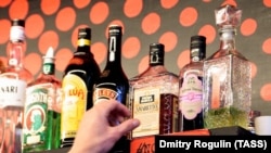 Klijent drži igru Naši momci u Salisburiju u trgovini u Moskvi.