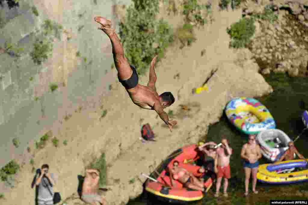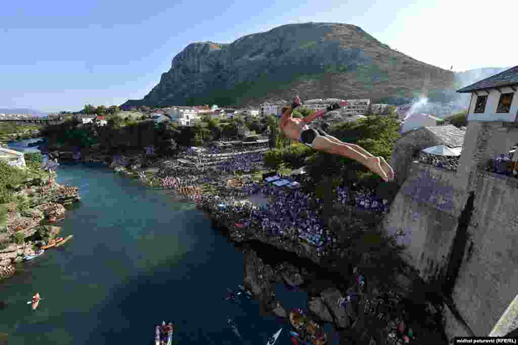 U Mostaru su završeni 450. tradicionalni skokovi sa Starog mosta. Skoro 60 skakača iz cijele regije takmičilo se u dvije kategorije - skok na glavu i skok na noge. Pobjednik u kategoriji skok na glavu je Lorens Listo iz Mostara, kom je ovo deseta pobjeda u skokovima sa Starog mosta. U kategoriji skok na noge pobijedio je dvadesetdvogodišnji Mostarac Edi Fink. Ovo je njegova prva pobjeda.