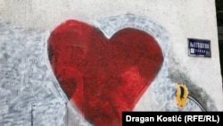 Na zidu na kome se nalazio mural ostalo je crveno srce.
