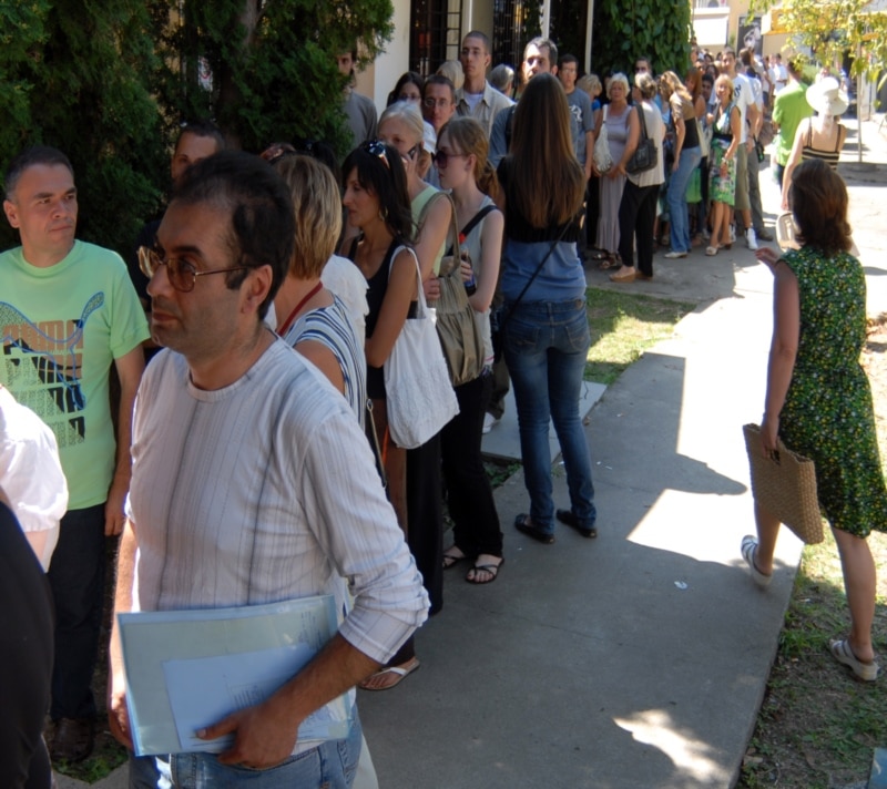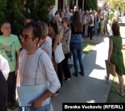 Pred šalterima za prijave kandidata za popisivače u Kragujevcu vlada velika gužva, pa iako se prijave primaju od devet ujutro do 20 časova uveče, u redu se čeka po nekoliko sati.