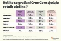 Kada je riječ o ratnim zločinima koji su se dogodili u Crnoj Gori u kojima imali učešće crnogorski državljani, veliki broj građana se sjeća napada na Dubrovnik i slučaja Štrpci. Sjećanje građana niže je za slučajeve Morinja, Bukovice, Kaluđerskog laza.