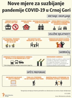 Nove mjere za suzbijanje pandemije COVID-19 u Crnoj Gori