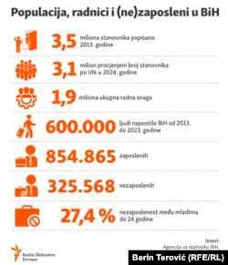 Dodaje da je na biroima za zapošljavanje u Federaciji BiH zvanično oko 260.000 nezaposlenih, a da "možda četvrtina traži posao, ostali su tu radi zdravstvenog osiguranja ili rade nacrno".