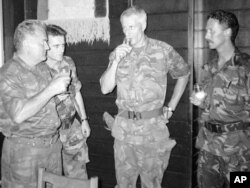 General Ratko Mladić nazdravlja sa komandantom UN-a iz Nizozemske Tomom Karremansom, Potočari, 12. jul 1992.