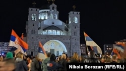 Veliki broj je okupljen i ispred Hrama Srpske pravoslavne Crkve u Podgorici.